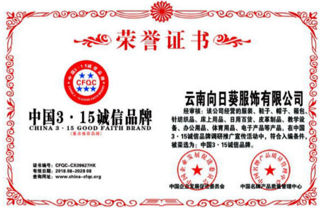 云南向日葵服飾有限公司成立于 1989 年,是具有 35年發(fā)展歷史的老牌服裝企業(yè)。原名“白玫亞達(dá)服裝廠(chǎng)”,因企業(yè)發(fā)展需要,現(xiàn)更名為“云南向日葵服飾有限公司”。云南向日葵服飾有限公司是國(guó)內(nèi)專(zhuān)業(yè)生產(chǎn)職業(yè)服裝經(jīng)營(yíng)企業(yè),是浙商在昆的知名企業(yè), 也是溫州商會(huì)常務(wù)副會(huì)長(zhǎng)單位。公司業(yè)務(wù)涉及公、檢、法、學(xué)校、交通、銀行等單位。公司從家族制企業(yè)起步,全面完成內(nèi)部職工持股改造,按照現(xiàn)代企業(yè)制度要求規(guī)范經(jīng)營(yíng),獲得業(yè)界好評(píng)和客戶(hù)信賴(lài)。